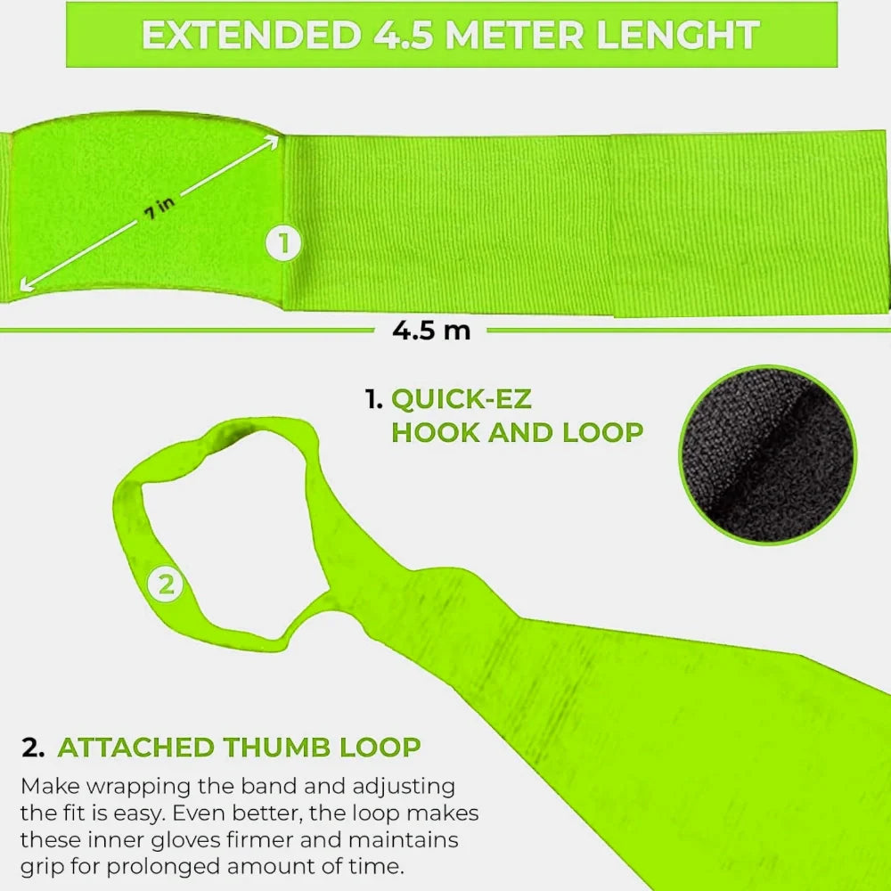 Thanks to a sturdy thumb loop and a reliable velcro strap, these boxing wraps stay locked even when sweat starts dripping everywhere. They’re flexible, strong and washable, so you can use them day in, day out without them turning into shredded rags. Whether you’re sparring, working on your jab-cross combos, or testing your endurance on a kickboxing bag, these green wraps are your best bet to keep your fists ready for battle.