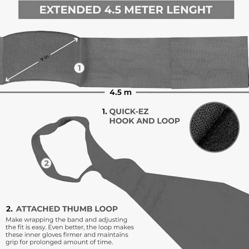 Grey boxing wraps that lock your wrists and fuel your punches