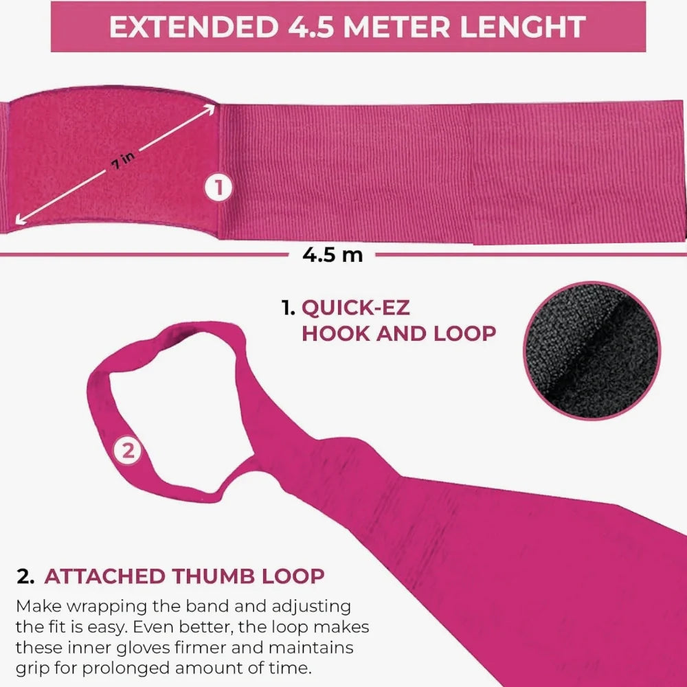 Built with a sturdy thumb loop and a velcro closure that doesn’t betray you mid-round, these hand wraps stay tight from warm-up to last bell. They shield your hands, fingers and wrists while letting you focus on combos, defense and going the extra round. Washable, reusable and tough enough to handle heavy bag abuse, they’re the kind of wraps that turn training pain into progress. Strap in, throw down, and let the pink do the talking.
